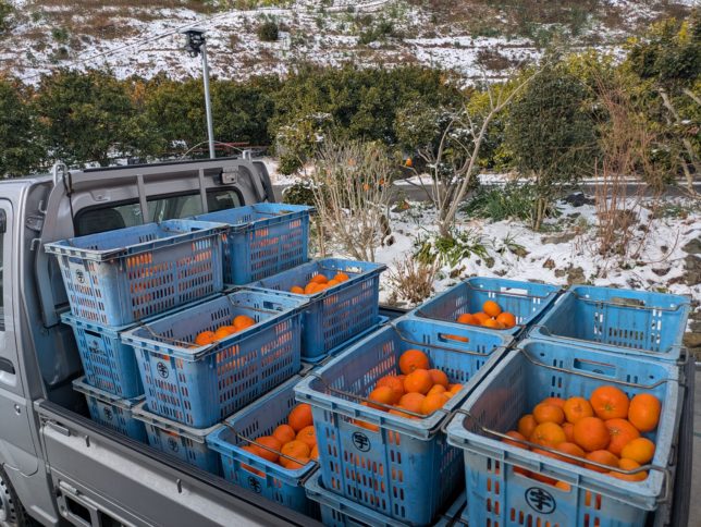 甘平は精品10杯、可品8杯、大玉2杯など。全部で30杯出荷。去年は精品レベルの品は友人たちに送って出荷した精品はゼロだった。今年は大幅に増えた。そのあとは、モロ(ブラッドオレンジ)の出荷。精品60杯、格外20杯。こちらも去年は精品15杯だったから大幅増だ。価格が問題だが。