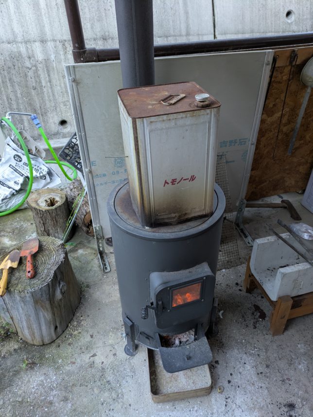 薪ストーブで焼豚