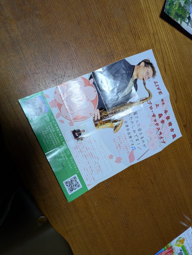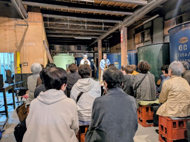 今日の目的は野村町の酒蔵(本家緒方蔵)で行われるサックスライブだ。奏者は上義幸さん。先日宇和で行われたデビッド・マシューズの演奏会にも出演されていた。